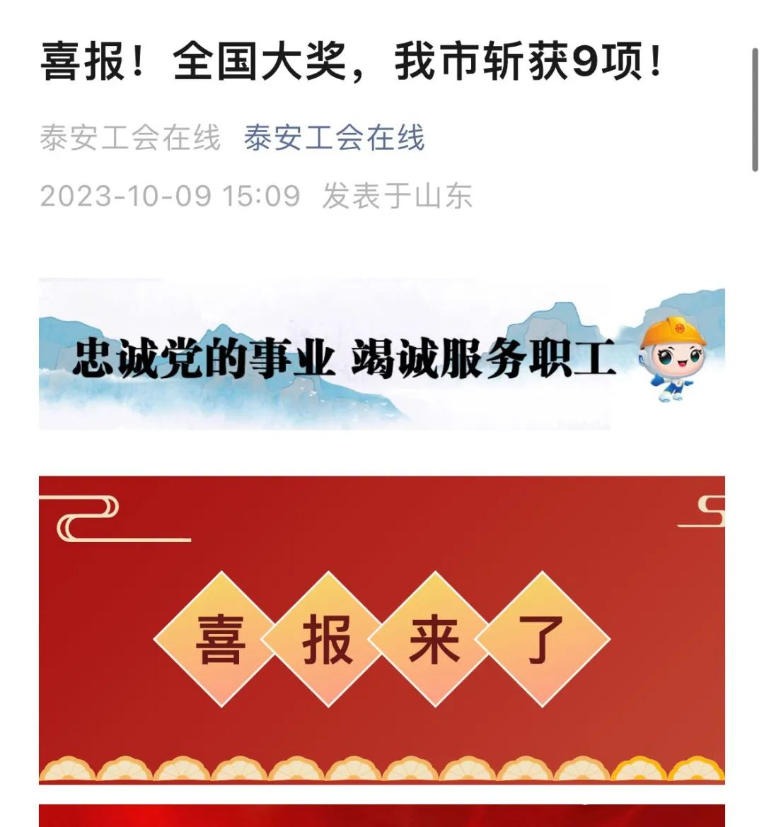 今年參評的4件作品用不同形式講述了近70年的歲月長河里,一代代泰建人,初心鑄魂,匠心筑夢,在時代的潮流中,奮楫爭先,踏浪前行,譜寫了創(chuàng)立、創(chuàng)業(yè)、創(chuàng)優(yōu)、創(chuàng)新的壯麗詩篇。據(jù)不完全統(tǒng)計,2023年“好網(wǎng)民”主題活動自3月啟動以來,面向全國各級工會共征集各類作品和案例1.2萬余件,網(wǎng)民參與終選投票3574萬余次。自2023年“好網(wǎng)民”主題活動啟動后,泰建集團(tuán)高度重視周密部署,工會迅速響應(yīng),廣大職工積極參與,涌現(xiàn)出一批體現(xiàn)時代精神、積極健康、向上向善,充滿正能量的工會文化、企業(yè)文化作品。今年共遴選優(yōu)秀作品10件參加,經(jīng)過層層篩選、投票和評審,最終歌曲類、視頻類、攝影類、誦讀類等多件作品入圍各子活動全國百強(qiáng),2件作品獲全國大獎。值得一提的是,這是泰建集團(tuán)連續(xù)3年參加全國總工會“好網(wǎng)民”主題活動,先后有9件作品獲獎,創(chuàng)造驕人佳績!本項活動已成為泰建集團(tuán)做好工會網(wǎng)上工作、推動宣傳智慧工會建設(shè)和工會數(shù)字化轉(zhuǎn)型、參與網(wǎng)絡(luò)文明建設(shè)的重要抓手和品牌活動。企業(yè)品牌宣傳實現(xiàn)了大飛躍,企業(yè)文化建設(shè)取得了大發(fā)展,精神文明建設(shè)獲得了大提升。
