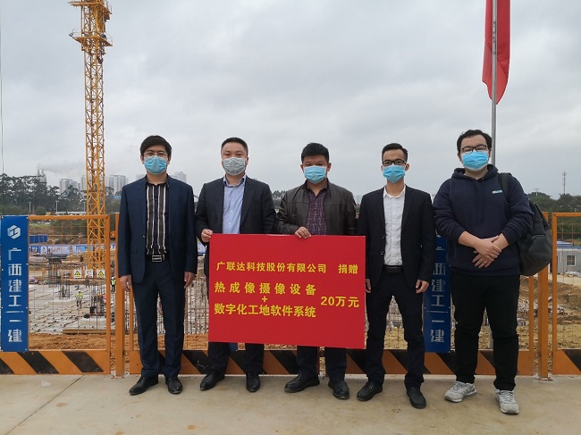 在廣西壯族自治區(qū)人民醫(yī)院邕武醫(yī)院平戰(zhàn)結(jié)合病房樓項(xiàng)目臨時(shí)黨支部揭牌儀式上,由廣聯(lián)達(dá)數(shù)字施工BG廣西公司總經(jīng)理伍君先生代表廣聯(lián)達(dá)公司,向項(xiàng)目部捐贈(zèng)了價(jià)值20萬元的熱成像攝像設(shè)備和數(shù)字化工地軟件系統(tǒng),為疫情期間項(xiàng)目復(fù)工提供數(shù)字化管理與防疫保障,為堅(jiān)守在抗擊疫情第一線的建設(shè)人員送去健康守護(hù)與關(guān)愛,與他們共同堅(jiān)守“抗疫”戰(zhàn)爭(zhēng)一線。